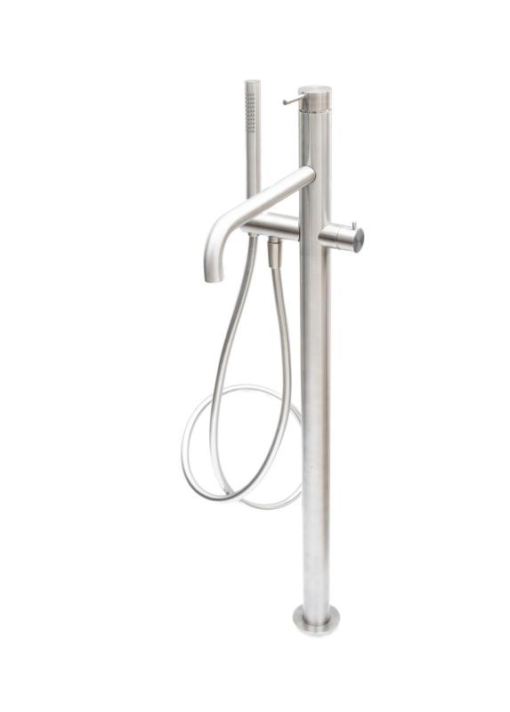 Met een hoogte van 885 mm en een uitloop van 250 mm biedt deze vrijstaande badkraan optimaal comfort bij het vullen van het bad. De geïntegreerde handdouche met vaste houder en omstelinrichting maakt de kraan extra praktisch voor afspoelen of schoonmaken. De kraan wordt op de vloer gemonteerd en is speciaal ontworpen voor vrijstaande badopstellingen.