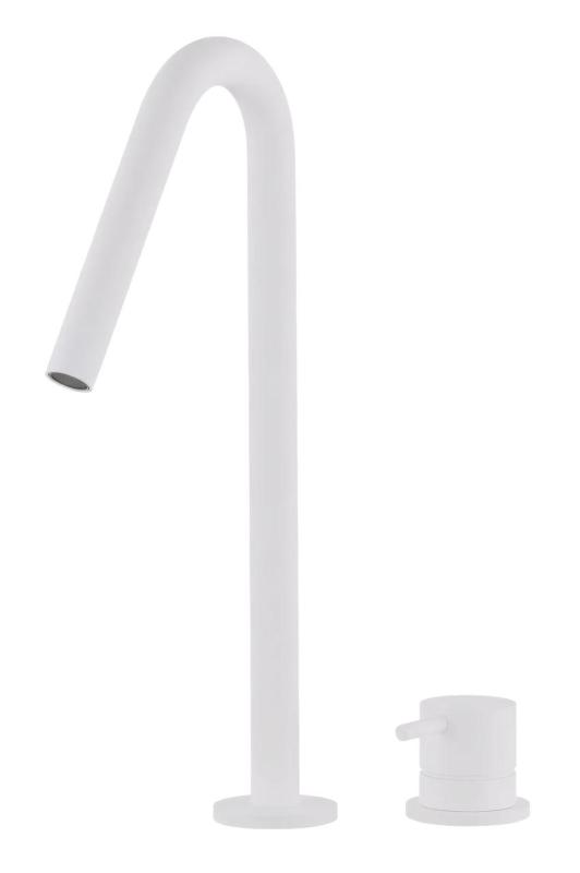 De Waterevolution Flow 2-gats wastafelkraan in wit met hoge V 120mm uitloop T1122VBR is een prachtige toevoeging aan jouw badkamer. Met zijn elegante design en strakke uitstraling brengt deze kraan een moderne touch aan je wastafel.